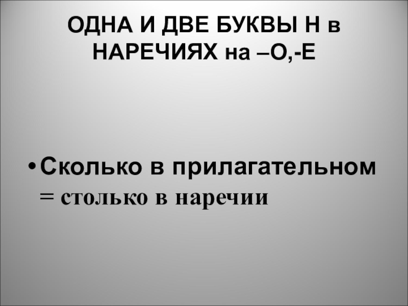 Слайд 14ОДНА И ДВЕ БУКВЫ Н в НАРЕЧИЯХ на –О,-Е