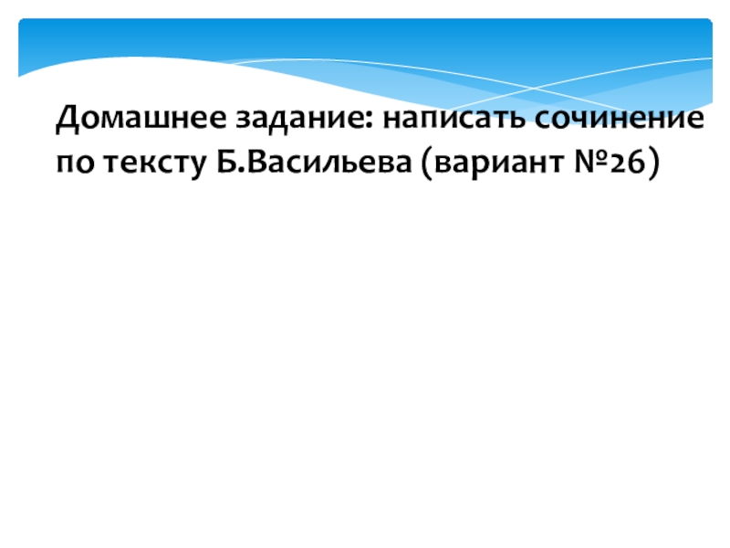 Слайд 16Домашнее задание: написать сочинение по тексту Б.Васильева (вариант №26)