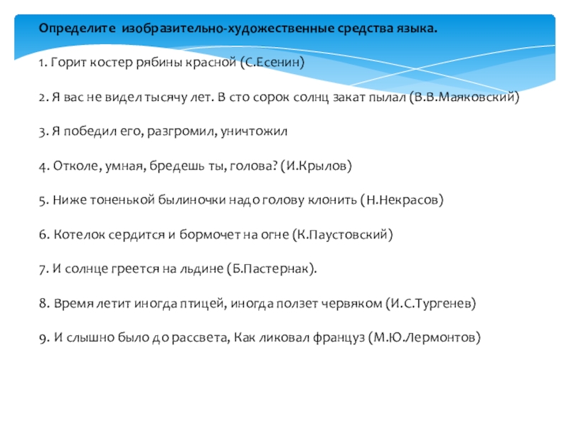 5. Ниже тоненькой былиночки надо голову клонить (Н.Некрасов)