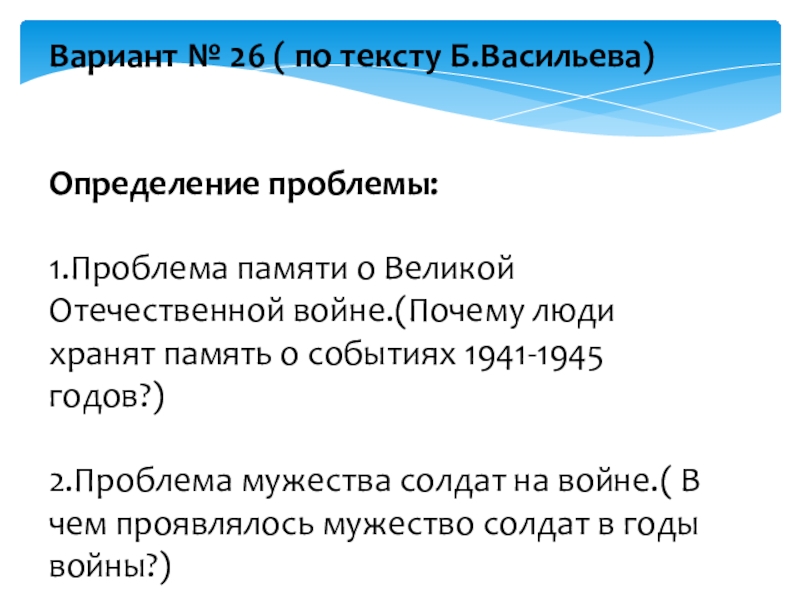 Слайд 14Вариант № 26 ( по тексту Б.Васильева)