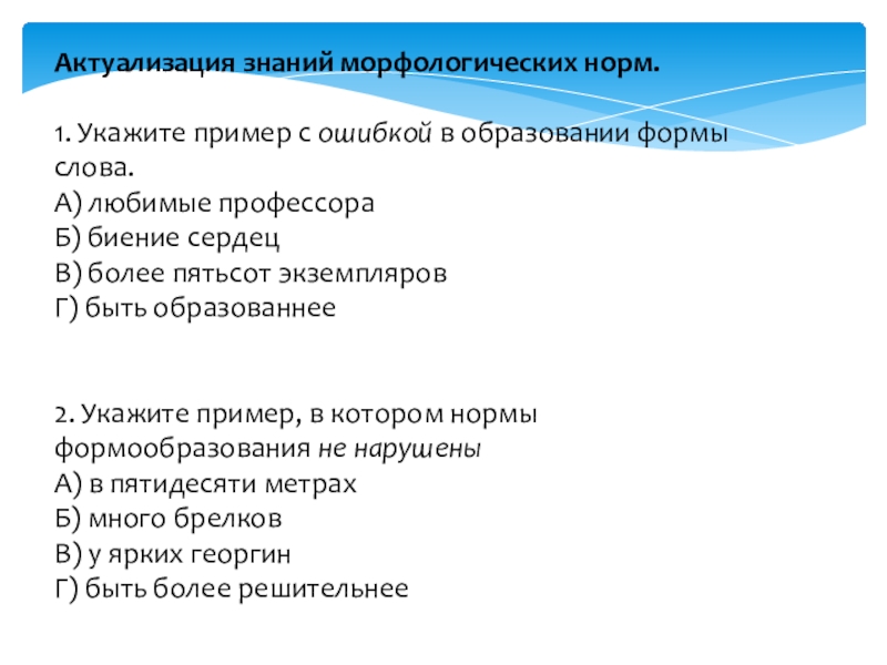 2. Укажите пример, в котором нормы формообразования не нарушены