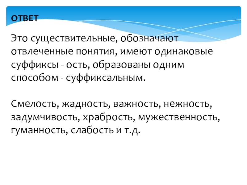такие, как ГОРДОСТЬ, МАЛОСТЬ, МУДРОСТЬ.