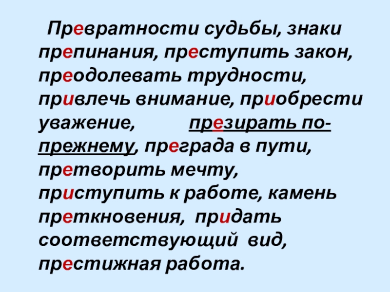 привлечь внимание, приобрести уважение, презирать по-прежнему, преграда в пути, претворить мечту, приступить к работе, камень преткновения,  придать соответствующий  вид, престижная работа.