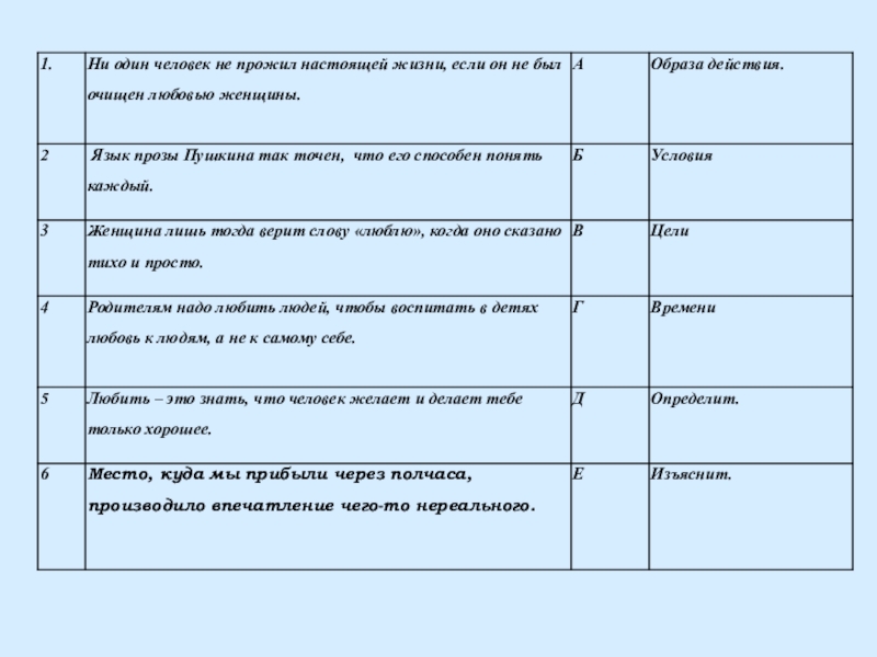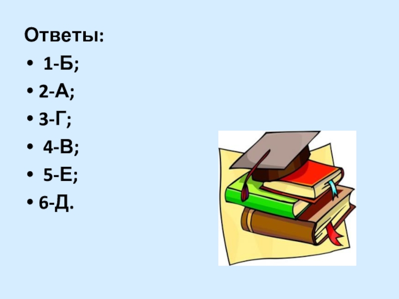 Ответы: 1-Б; 2-А; 3-Г; 4-В; 5-Е; 6-Д.