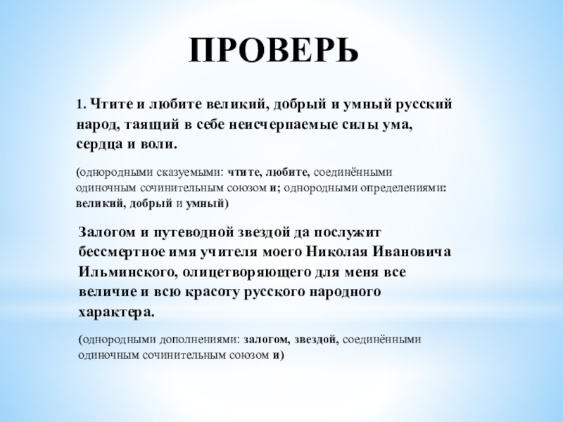 ПРОВЕРЬ 1. Чтите и любите великий, добрый и умный русский народ, таящий в себе неисчерпаемые силы ума,
