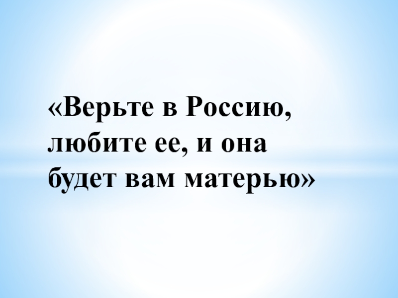 Слайд 1 «Верьте в Россию, любите ее, и она будет вам матерью»