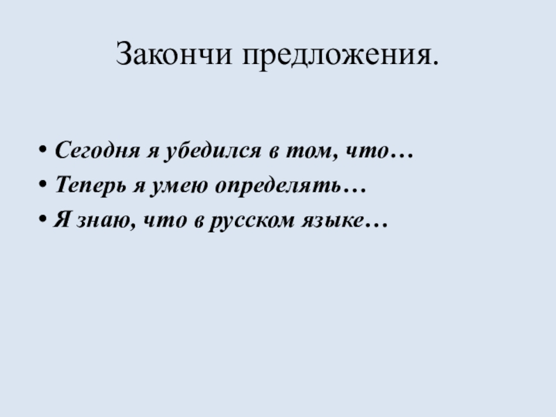 Закончи предложения. Сегодня я убедился в том, что… Теперь я умею определять…Я знаю, что в русском языке…