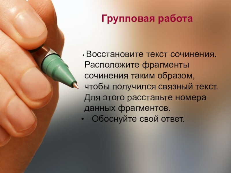 Слайд 13Работа над сочинением №2