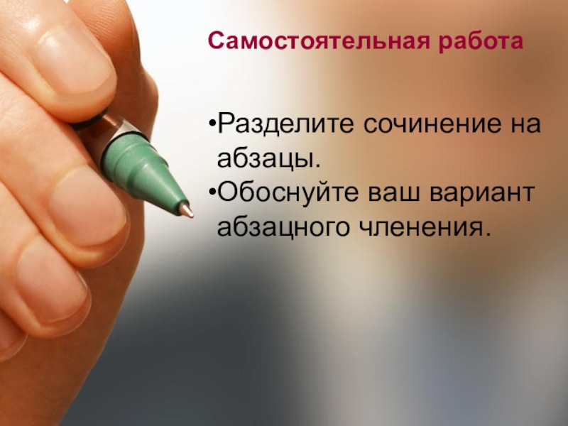 Разделите сочинение на абзацы.