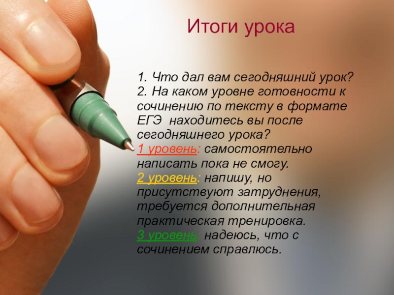к сочинению по тексту в формате ЕГЭ находитесь вы после сегодняшнего урока?
