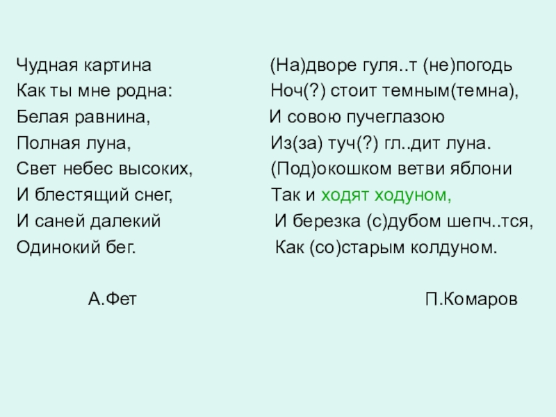 Чудная картина            (На)дворе гуля..т (не)погодь Как