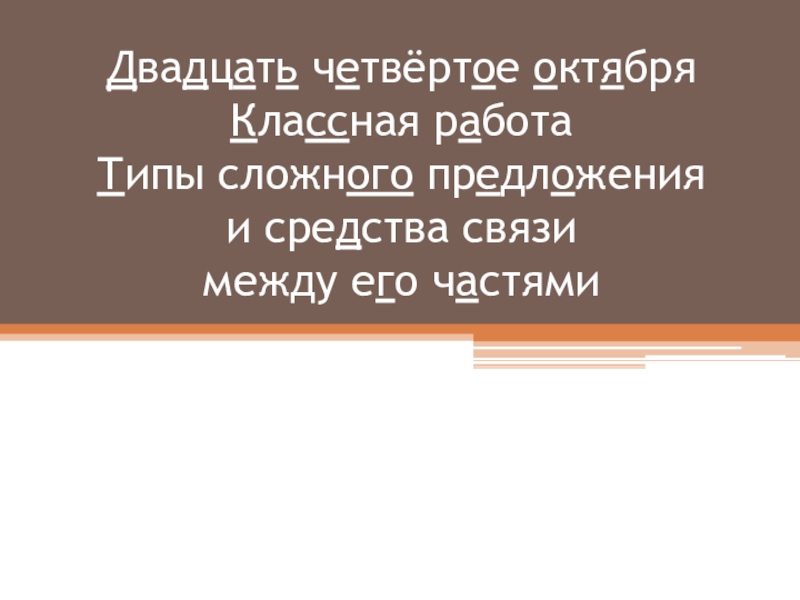 Слайд 1Двадцать четвёртое октября Классная работа Типы сложного предложения и