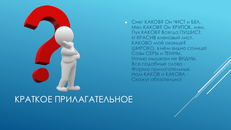 Снег КАКОВ? Он ЧИСТ и БЕЛ.
