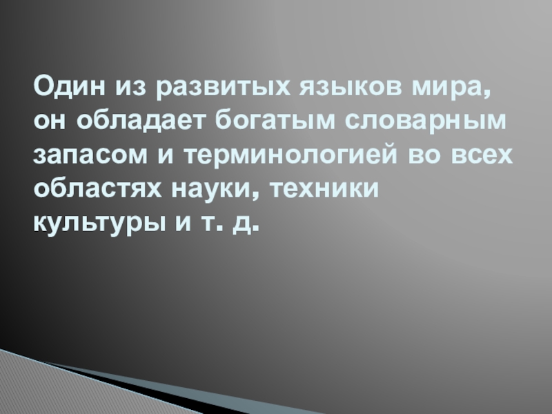 Один из развитых языков мира, он обладает богатым словарным запасом и