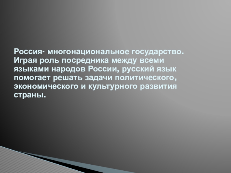 Слайд 7 Русский язык – это государственный язык Российской Федерации.