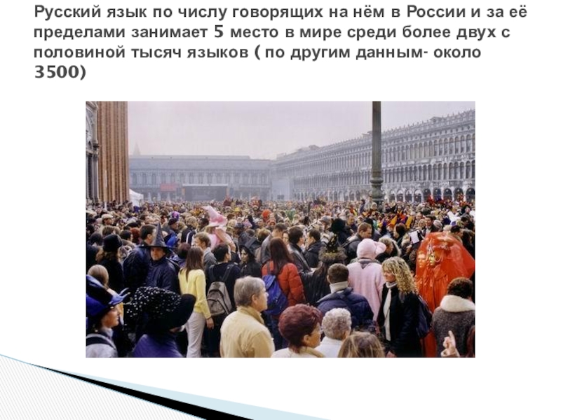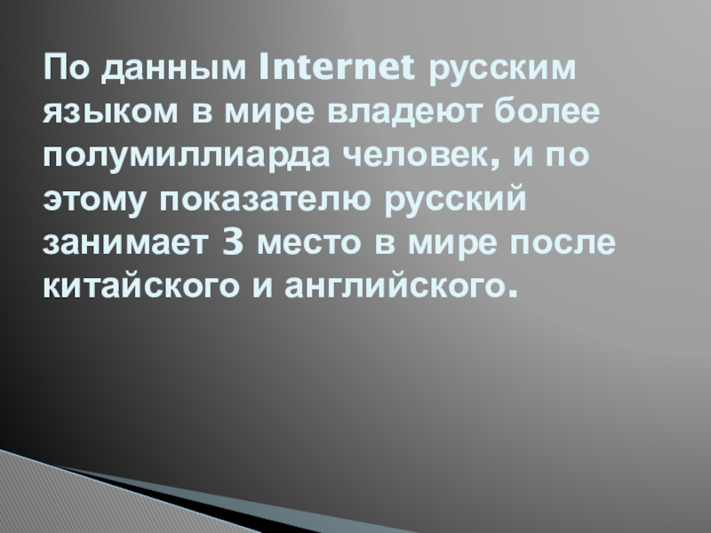 По данным Internet русским языком в мире владеют более полумиллиарда человек,
