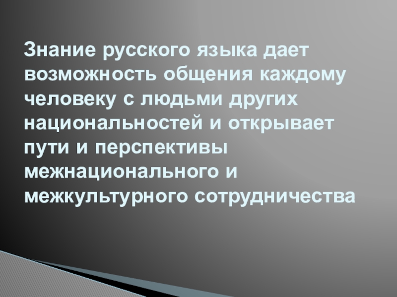 Знание русского языка дает возможность общения каждому человеку с людьми других