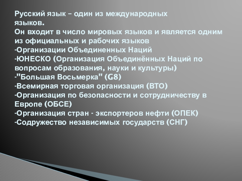Русский язык – один из международных языков.