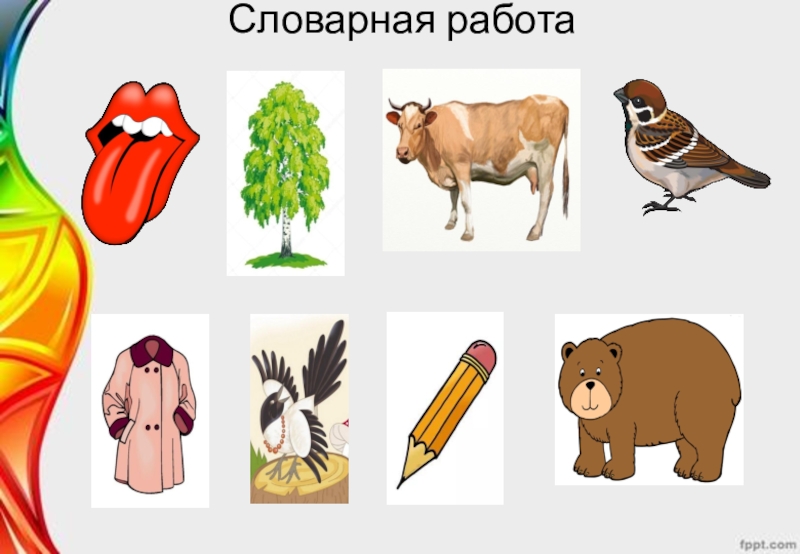 Словарная работаЯзыкберёзакороваворобейпальтосорокакарандашмедведь