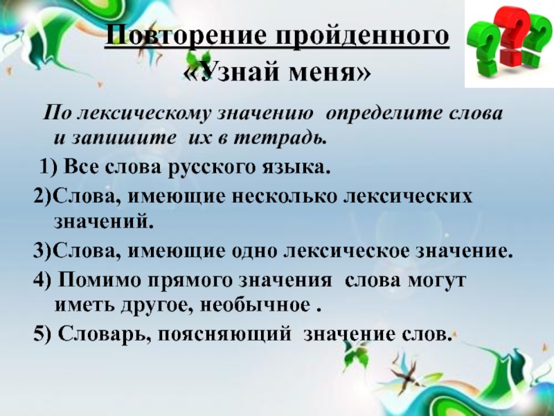 4) Помимо прямого значения слова могут иметь другое, необычное .