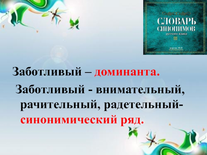 Заботливый - внимательный, рачительный, радетельный-синонимический ряд.