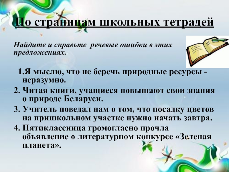 4. Пятиклассница громогласно прочла объявление о литературном конкурсе «Зеленая планета».