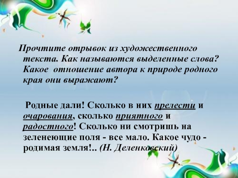 Слайд 12 Прочтите отрывок из художественного текста. Как называются выделенные слова? Какое