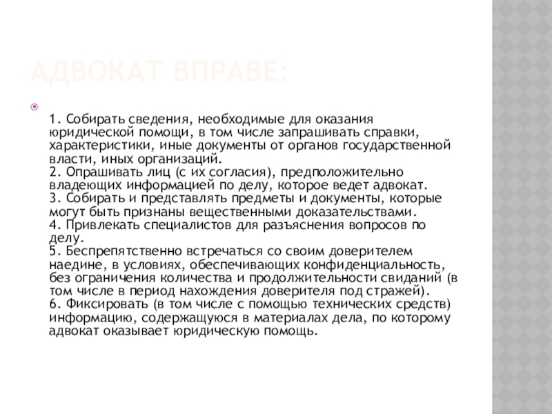 1. Собирать сведения, необходимые для оказания юридической помощи, в