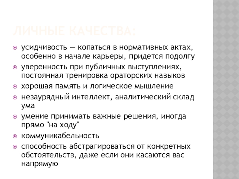 Слайд 7ЛИЧНЫЕ КАЧЕСТВА: