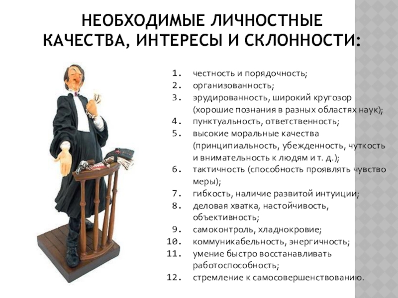 Слайд 4НЕОБХОДИМЫЕ ЛИЧНОСТНЫЕ КАЧЕСТВА, ИНТЕРЕСЫ И СКЛОННОСТИ: