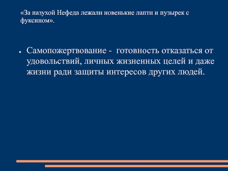 «За пазухой Нефеда лежали новенькие лапти и пузырек с фуксином».