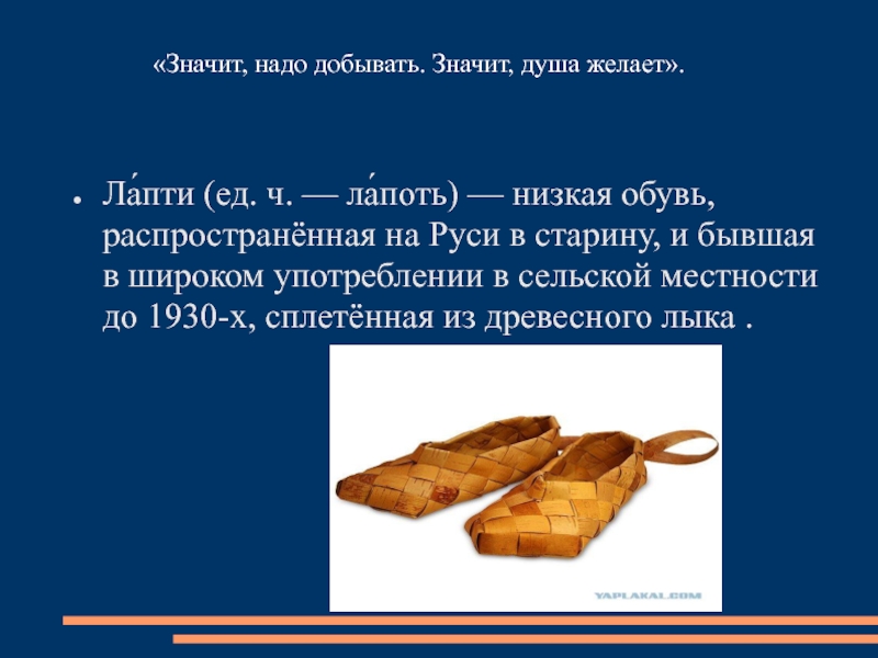 Надо в Новоселки идти (6 верст), купить там обыкновенные лапти и покрасить их фуксином.