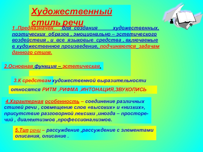 ХУДОЖЕСТВЕННЫЙ СТИЛЬ РЕЧИ