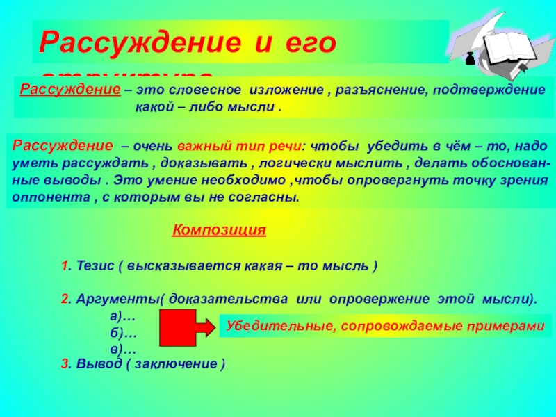 Рассуждение – очень важный тип речи: чтобы убедить в чём – то, надо