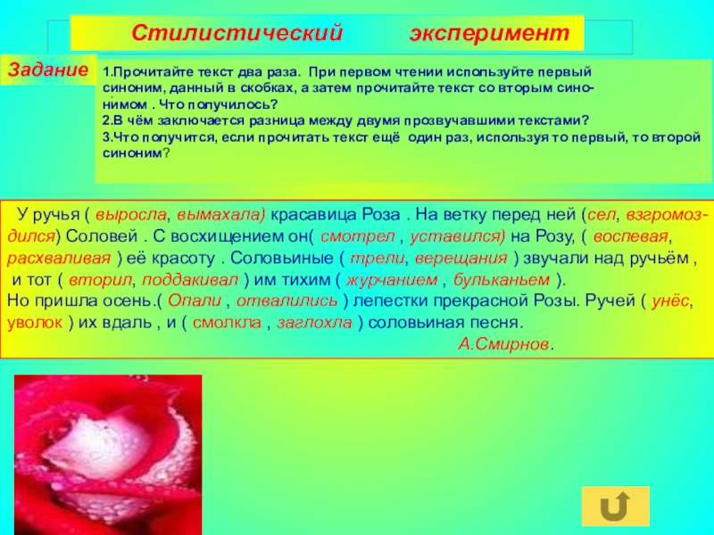 дился) Соловей . С восхищением он( смотрел , уставился) на Розу, ( воспевая,