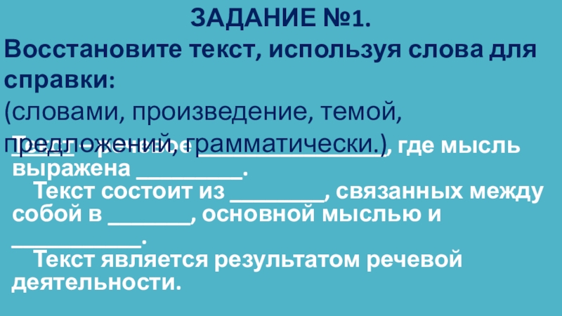 ОСНОВНУЮ МЫСЛЬ ТЕКСТА,
