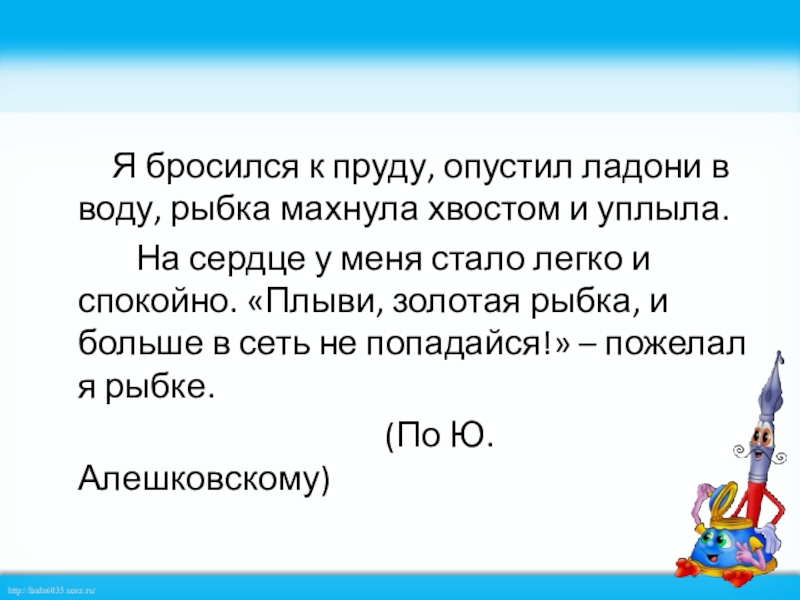 Слайд 11 Я бросился к пруду, опустил ладони в
