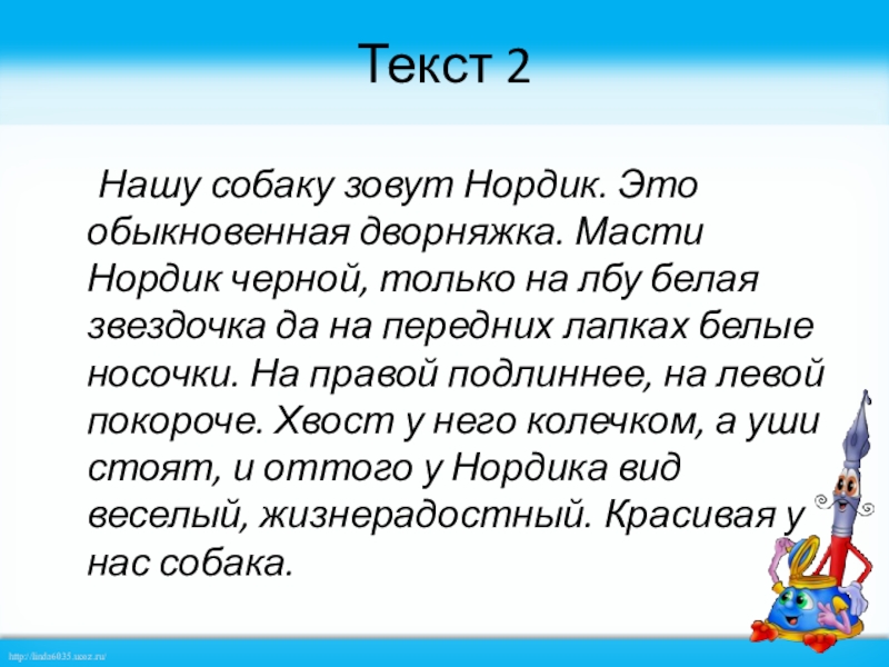 Нашу собаку зовут Нордик. Это обыкновенная дворняжка.