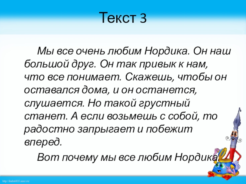 Он наш большой друг. Он так привык к нам, что все понимает. Скажешь, чтобы он оставался дома, и он останется, слушается. Но такой грустный станет. А если возьмешь с собой, то радостно запрыгает и побежит вперед.