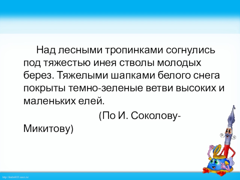 Слайд 13 Над лесными тропинками согнулись под тяжестью
