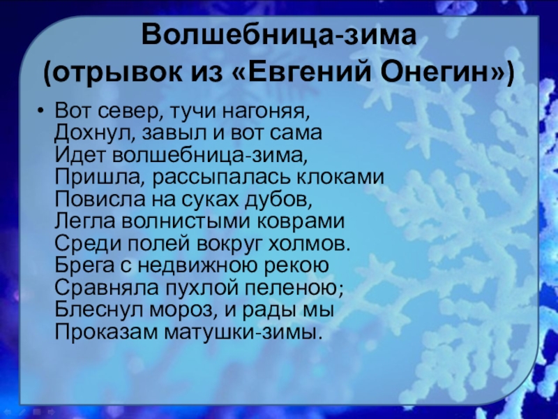 Слайд 6 Волшебница-зима (отрывок из «Евгений Онегин»)