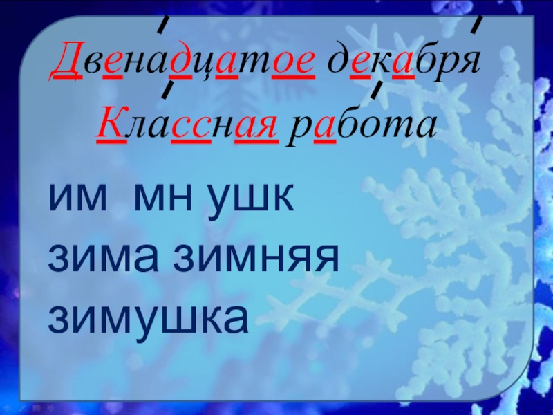 Двенадцатое декабряКлассная работаим мн ушкзима зимняя зимушка
