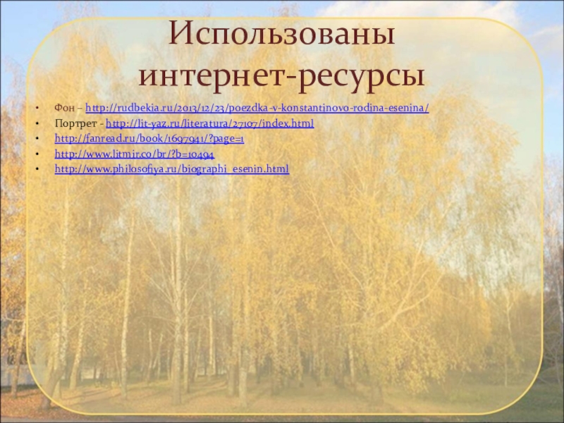 А Есенин ощущал себя деревом, травой, месяцем. Это уникальное явление в поэзии, исследователи этот новаторский прием назвали «олицетворение наоборот». Только Есенин мог сказать:
