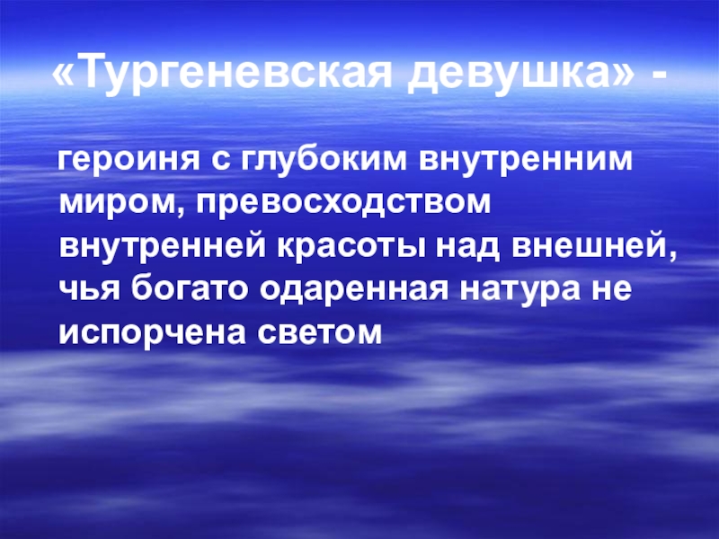 «Тургеневская девушка» -  героиня с глубоким внутренним миром, превосходством внутренней красоты над внешней, чья богато одаренная