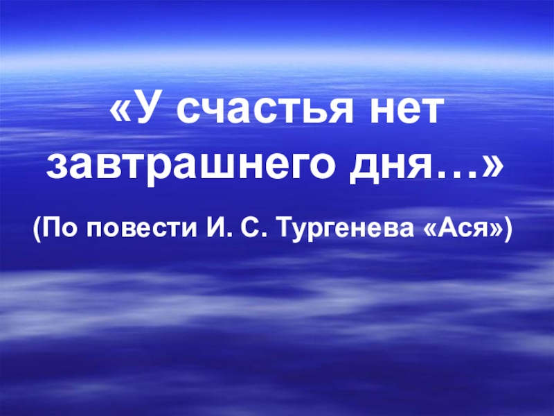 Презентация, доклад к уроку У счастья нет завтрашнего дня… (По повести И. С. Тургенева Ася)