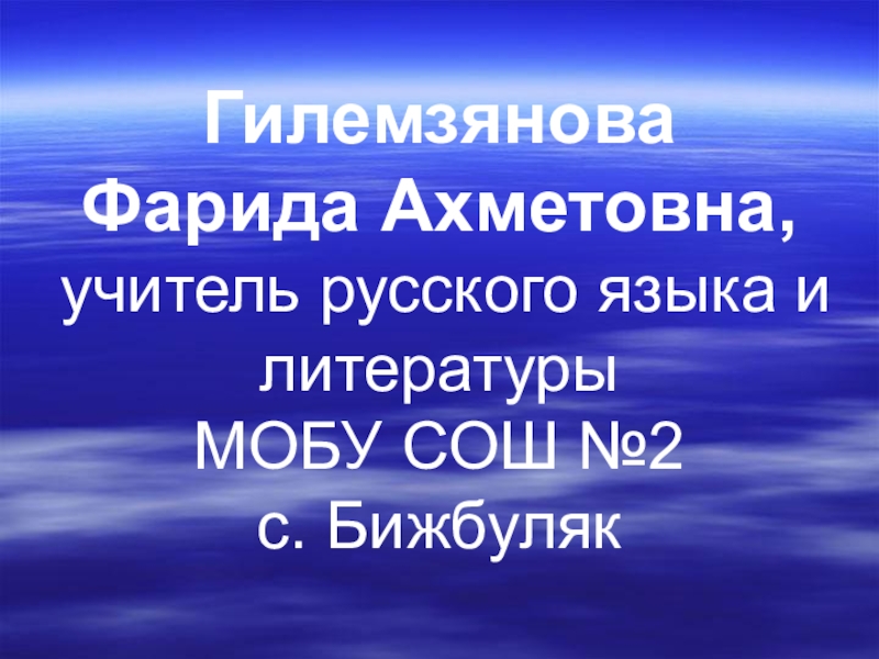 Слайд 1Гилемзянова Фарида Ахметовна, учитель русского языка и литературы МОБУ СОШ №2 с. Бижбуляк
