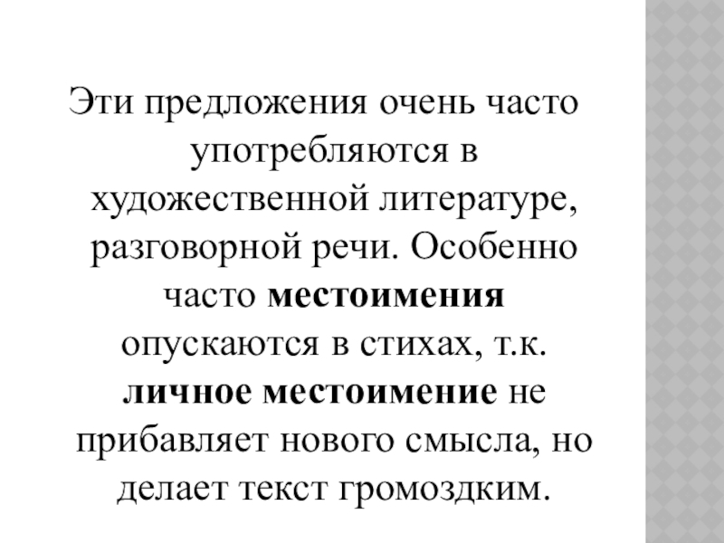 Слайд 8Эти предложения очень часто употребляются в художественной литературе, разговорной речи. Особенно