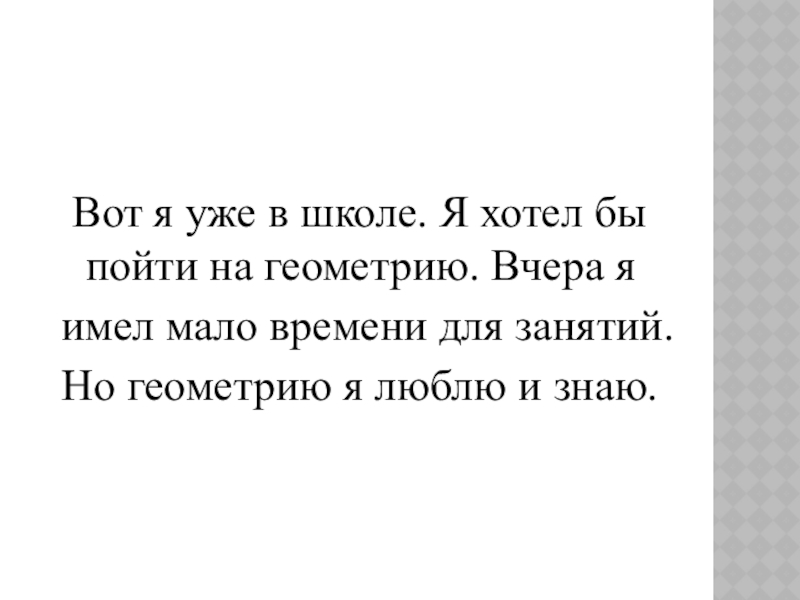 Вот я уже в школе. Я хотел бы пойти на геометрию. Вчера я имел мало времени