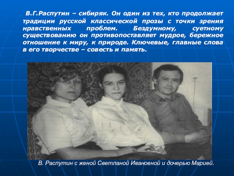 В. Распутин с женой Светланой Ивановной и дочерью Марией.