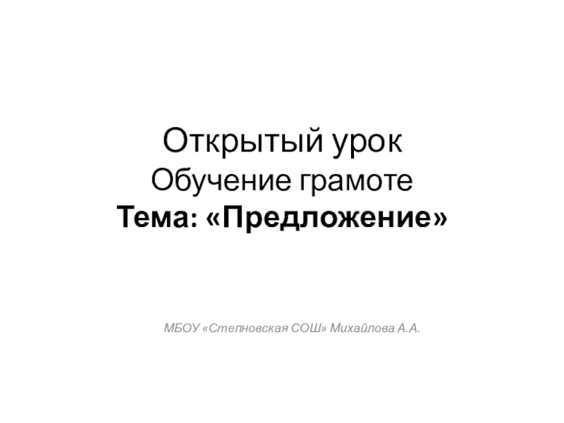 Открытый урок Обучение грамоте Тема: «Предложение» МБОУ «Степновская СОШ» Михайлова А.А.